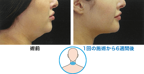 脂肪溶解注射などの注射治療などは一切せず、ここまで二重あごのボリュームダウンに成功しました。横顔がだいぶスッキリして、顎がシャープに、首も長く見えるほどです。脂肪細胞はアポトーシスしますので脂肪細胞の数が減り、リバウンドしにくいのがとても魅力的な治療法です。
